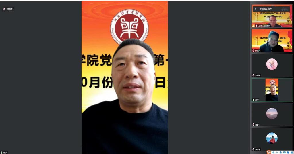 根据河南牧业经济学院党委组织部《关于开展2022年10月份主题党日活动的通知》文件精神,10月27日下午,yl23455永利官网教工第一党支部10份主题党日活动通过腾讯会议顺利开展。学院党委书记权太举和支部全体党员参与学习和研讨。